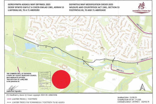 The Council has made a legal order to update the Definitive Map and Statement, which is the official record of public rights of way in the Cynon Valley area. This update adds three public footpaths in Aberdare—Footpaths 69, 70, and 71—to the official map. These are now legally recognized public paths, and their routes, lengths,…