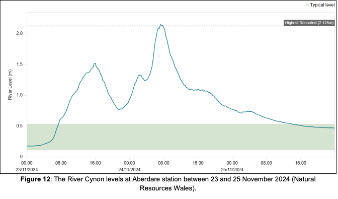 Storm Bert resulted in flooding to 24 homes, along with significant flooding to the highway. The report establishes that the primary source of flooding was the River Rhondda overtopping its southern riverbank at several locations.